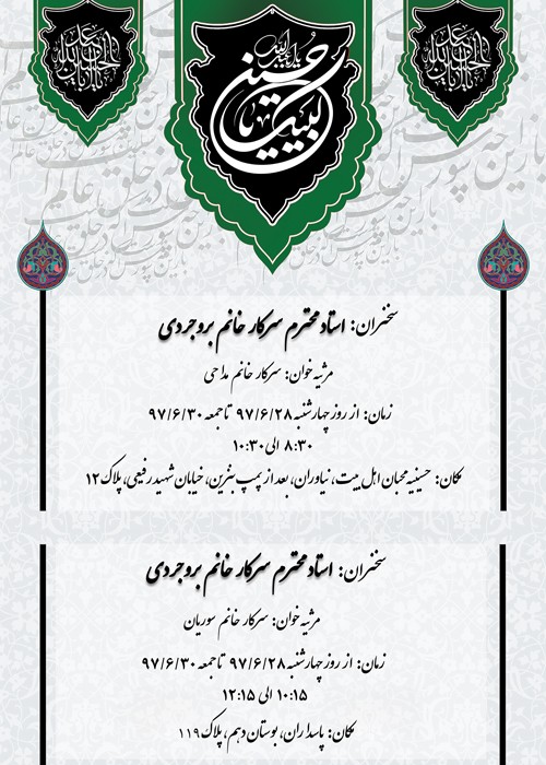 مکان: حسینیه محبان اهل بیت،نیاوران بعد از پمپ بنزین،خیابان شهید رفیعی،پلاک 12